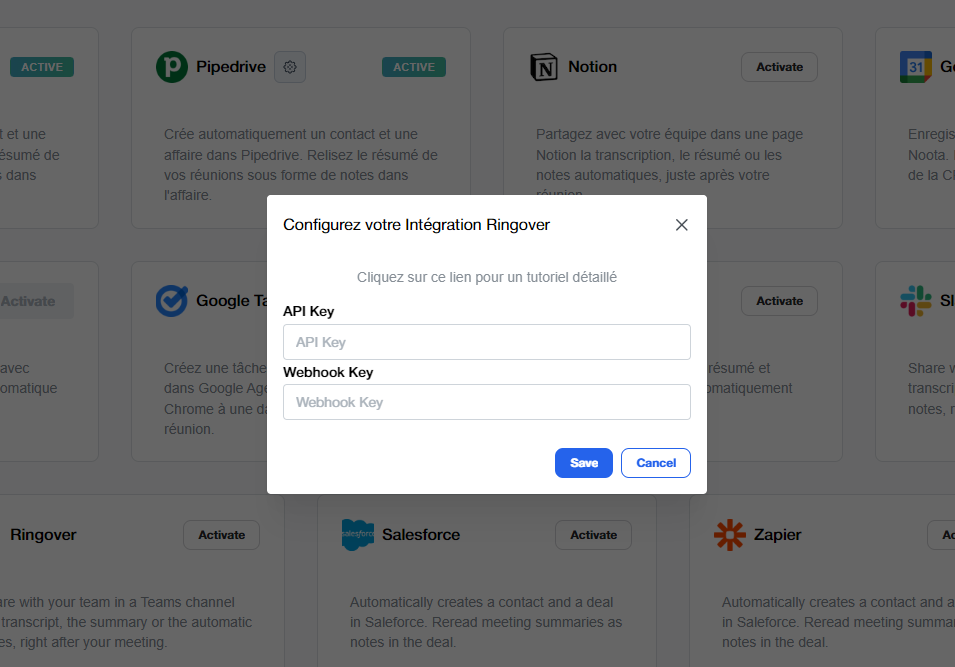 Votre intégration Ringover est maintenant connectée et prête à être utilisée !