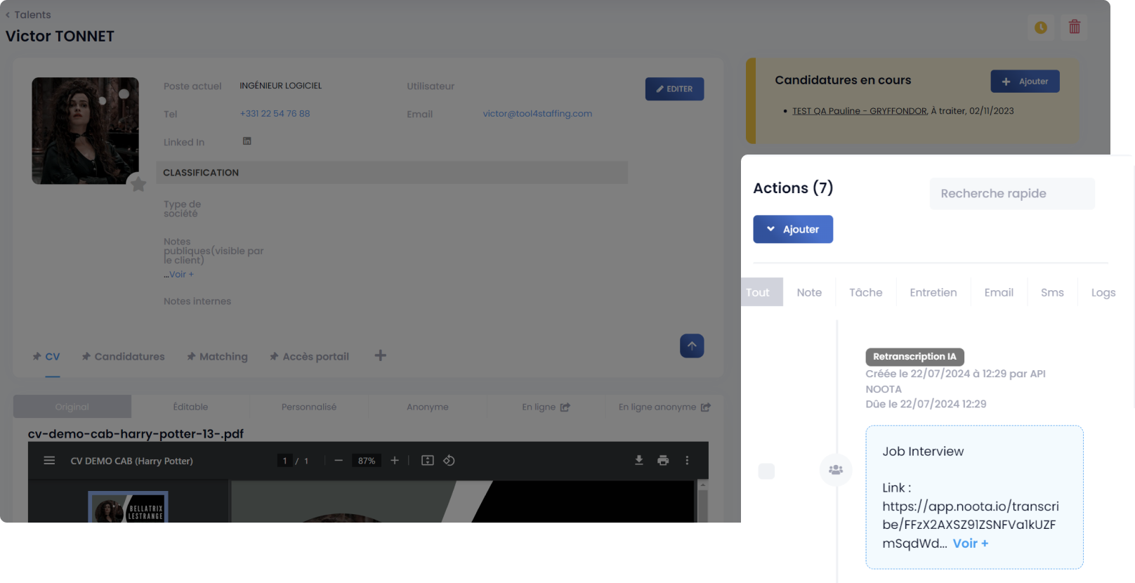 Après avoir terminé une entrevue, suivez ces étapes pour partager le résumé via l' intégration Tool4Staffing :