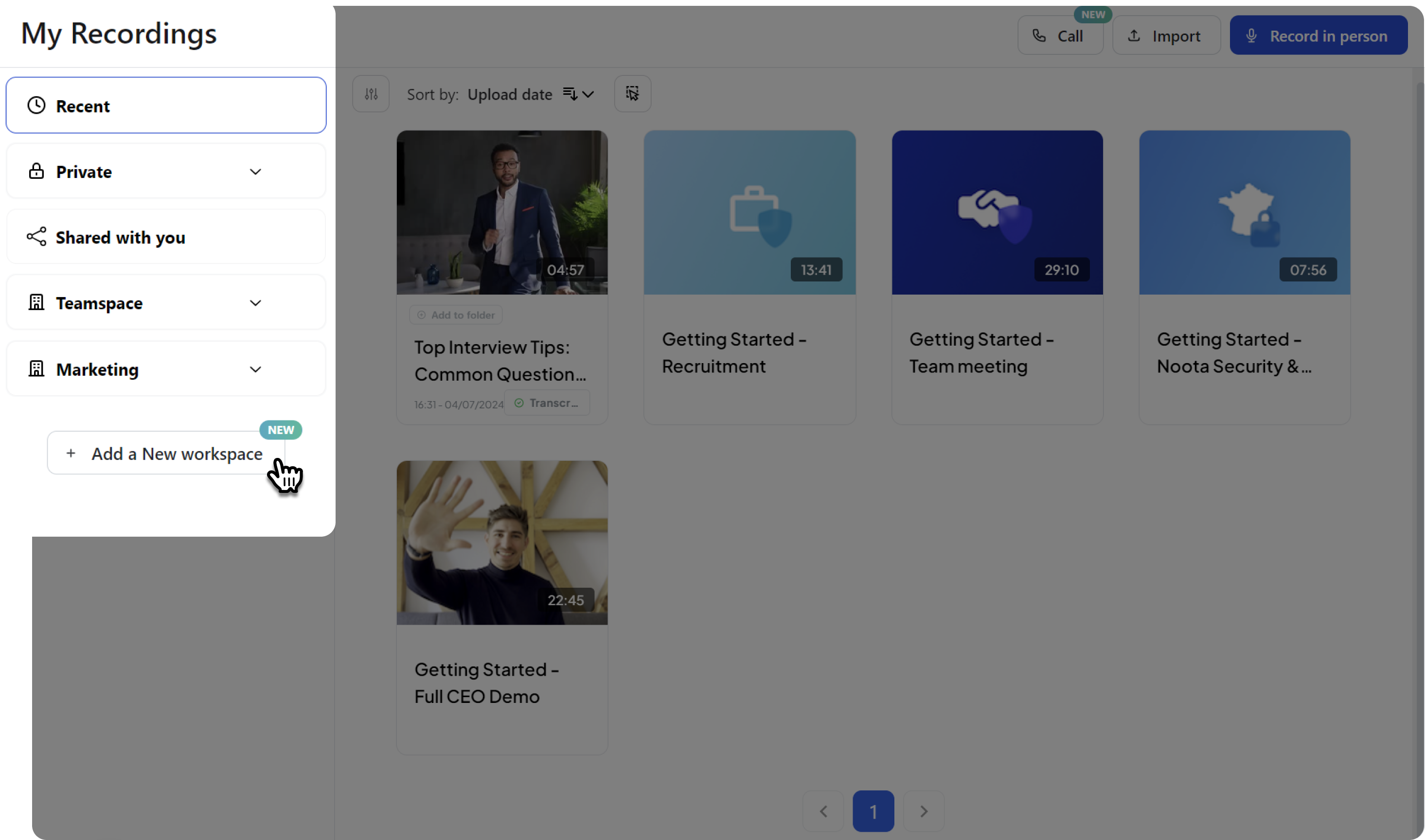 Chaque espace de travail peut être organisé avec des dossiers basés sur différents sujets, tâches ou départements.