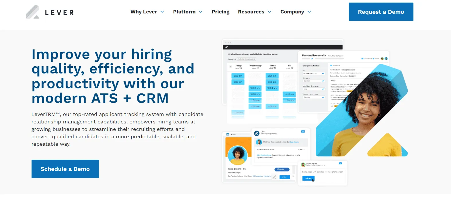 Lever est reconnu pour sa plateforme de recrutement collaboratif, facilitant une approche humaine dans le processus d'embauche. Il s'adresse principalement aux startups et aux scale-ups, mettant en avant une interface utilisateur conviviale et une personnalisation flexible des flux de travail. Son intégration avec les calendriers et les emails simplifie la gestion des candidatures.
