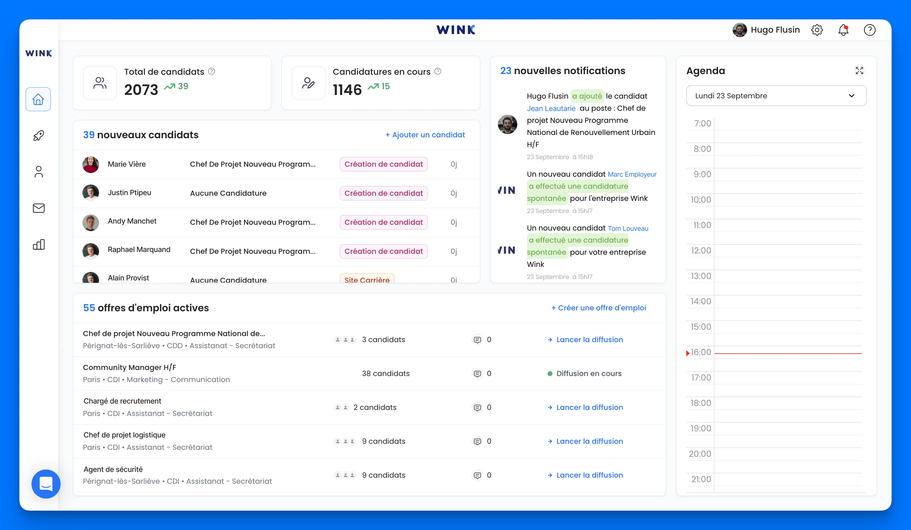 Wink est un logiciel de recrutement (ATS) ergonomique et intuitif, conçu par deux anciens recruteurs pour simplifier et optimiser le processus de recrutement.