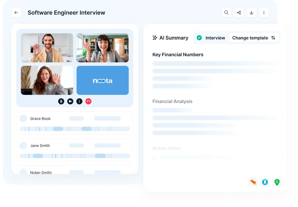 No, Noota records, transcribes and summarizes your interviews. It helps you make informed decisions with clear information about the candidate. But it's not a substitute for your own judgment and assessment skills.